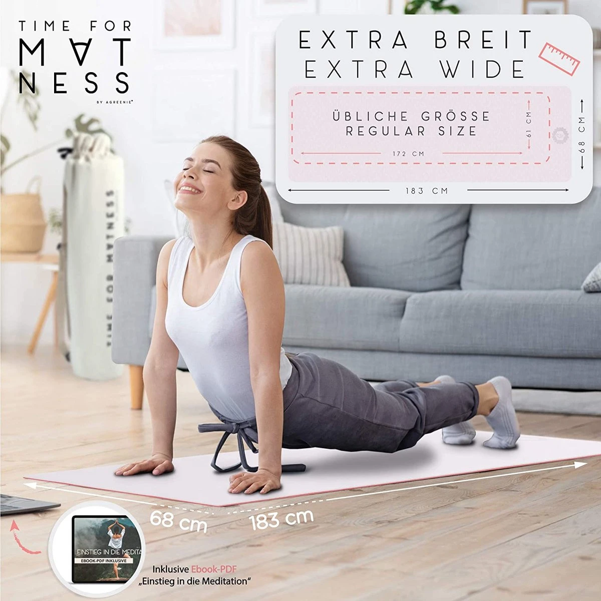 - De perfecte set: je nieuwe yogamat van AGreenie wordt geleverd in een set met de Time for Matness-tas en het e-book (mogelijk niet beschikbaar in het Nederlands). Een leuk cadeau voor jezelf of je geliefden.