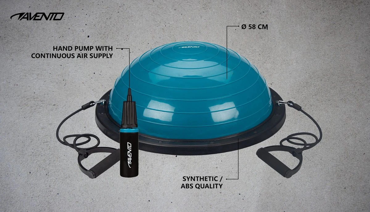 Dit balanskussens wordt veel gebruikt door sporters, personal trainers en fysiotherapeuten. De Avento balans bal disc wordt geleverd inclusief verwijderbare weerstandsbanden, hiermee kun je ook je armen en schouders trainen. Met de bijgeleverde pomp kan de balanstrainer eenvoudig opgepompt worden.