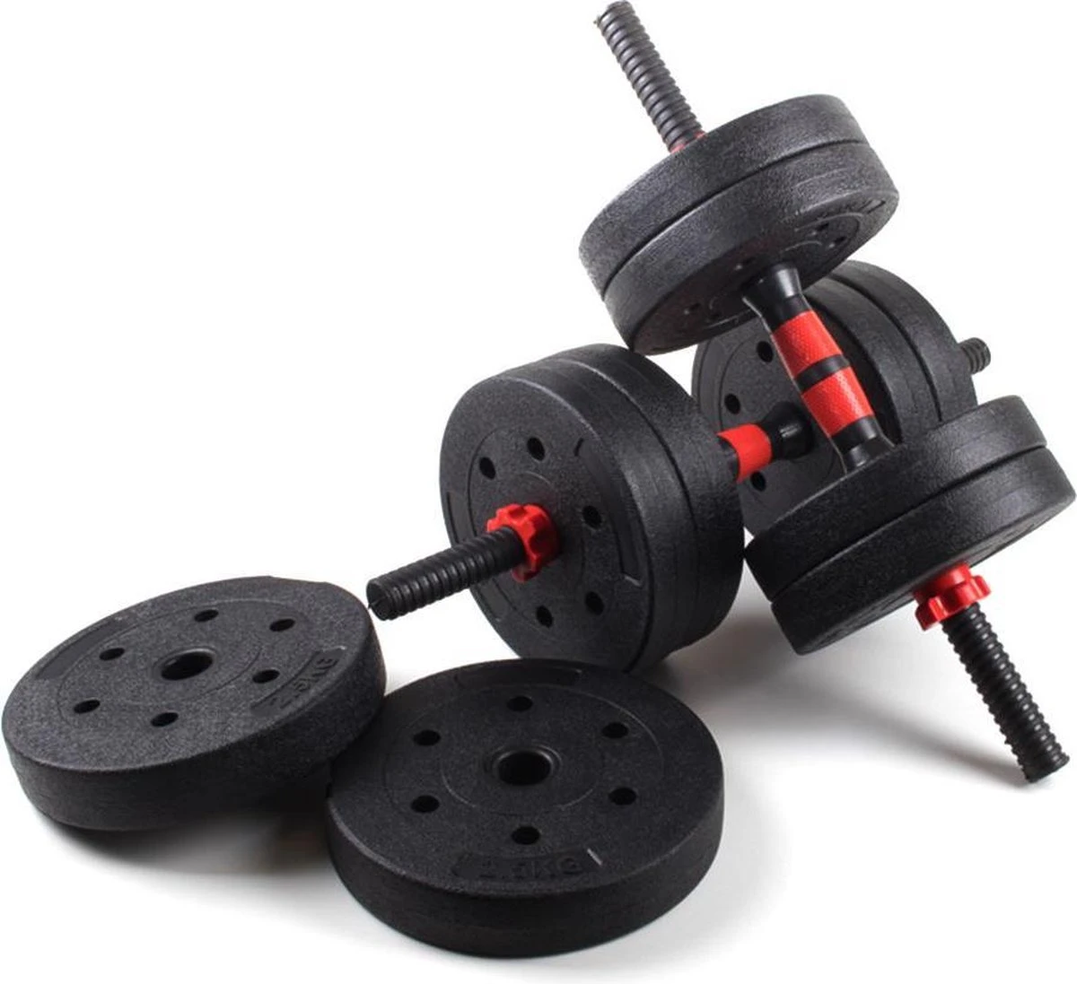 Door middel van deze fitness gewichten set trainen je waar en wanneer je zelf wilt, zonder dat je naar de sportschool, gym of georganiseerde sport hoeft te gaan. Op ieder moment van de dag kun je op een laagdrempelige manier thuis, in de tuin of in het park een workout/ training gaan doen. Deze dumbbellset / halterset bestaat uit de volgende fitness gewichten met accessoires: