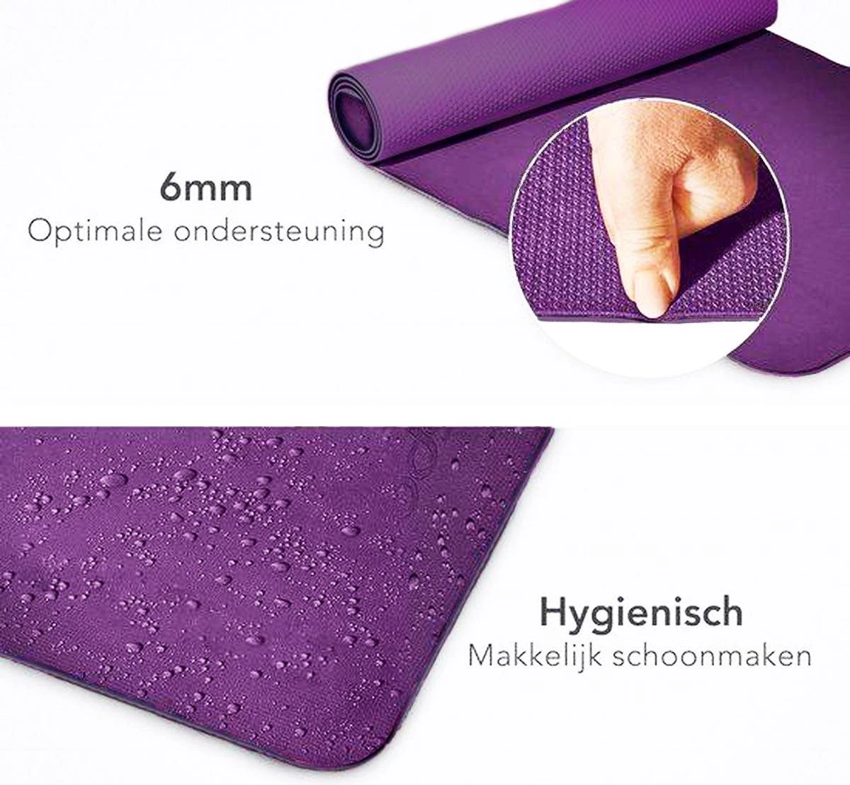 Het TPE-materiaal biedt een technologische verbetering op de traditionele yoga matten en heeft een hogere dichtheid dan pvc-materiaal, waardoor onze yoga matten elastischer zijn. TPE-materiaal is milieuvriendelijk, minder schadelijk voor de gezondheid en duurzaam. De Eco Mat is dus goed voor de aarde en voor jou!