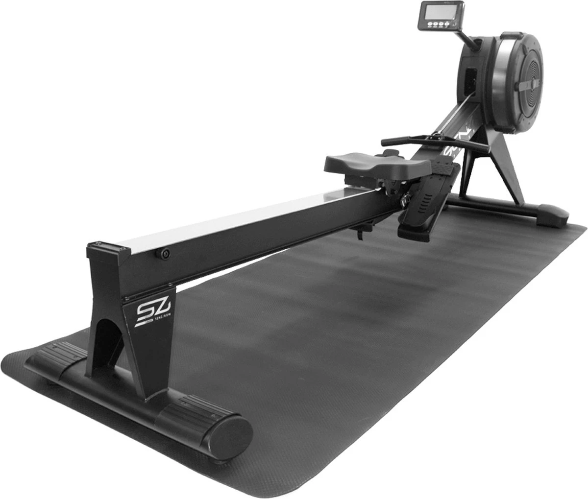 De afmeting van deze vloermat is 250 x 100 cm. De mat is gemaakt van rubber en geschikt voor plaatsing onder vrijwel alle fitnessapparaten.