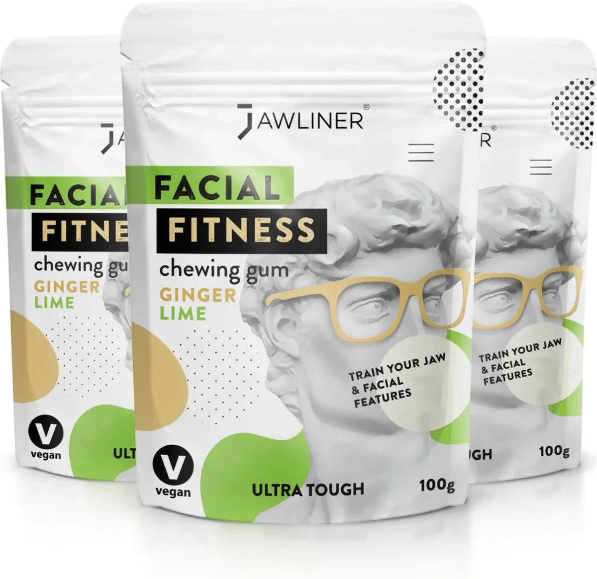De kauwgom voor een mooie kaaklijn, train je hele gezichtsspierstelsel met ’s werelds eerste fitnesskauwgom. Simuleer hard kauwen met de hardste kauwgom ter wereld en geniet van het positieve effect van een goed getrainde en gedefinieerde kaaklijn.
