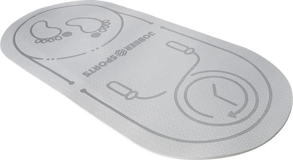 Deze workoutmat is speciaal gemaakt voor springtouw oefeningen, vanwege de unieke mix van hoogwaardig rubber en PVC. Ook beschikt het over een anti-slip laag. Met een gewicht van 500 gram is de springtouw mat zwaarder dan een gewone fitness mat. Deze jumprope mat absorbeert de impact van het springen en geeft je een verfijnde respons en feedback. Met deze workoutmat maak je je thuissport collectie compleet! De ovale vorm met een diameter van 140 cm geeft voldoende ruimte voor diverse jump rope oefeningen, zoals side swings en squat jumps.