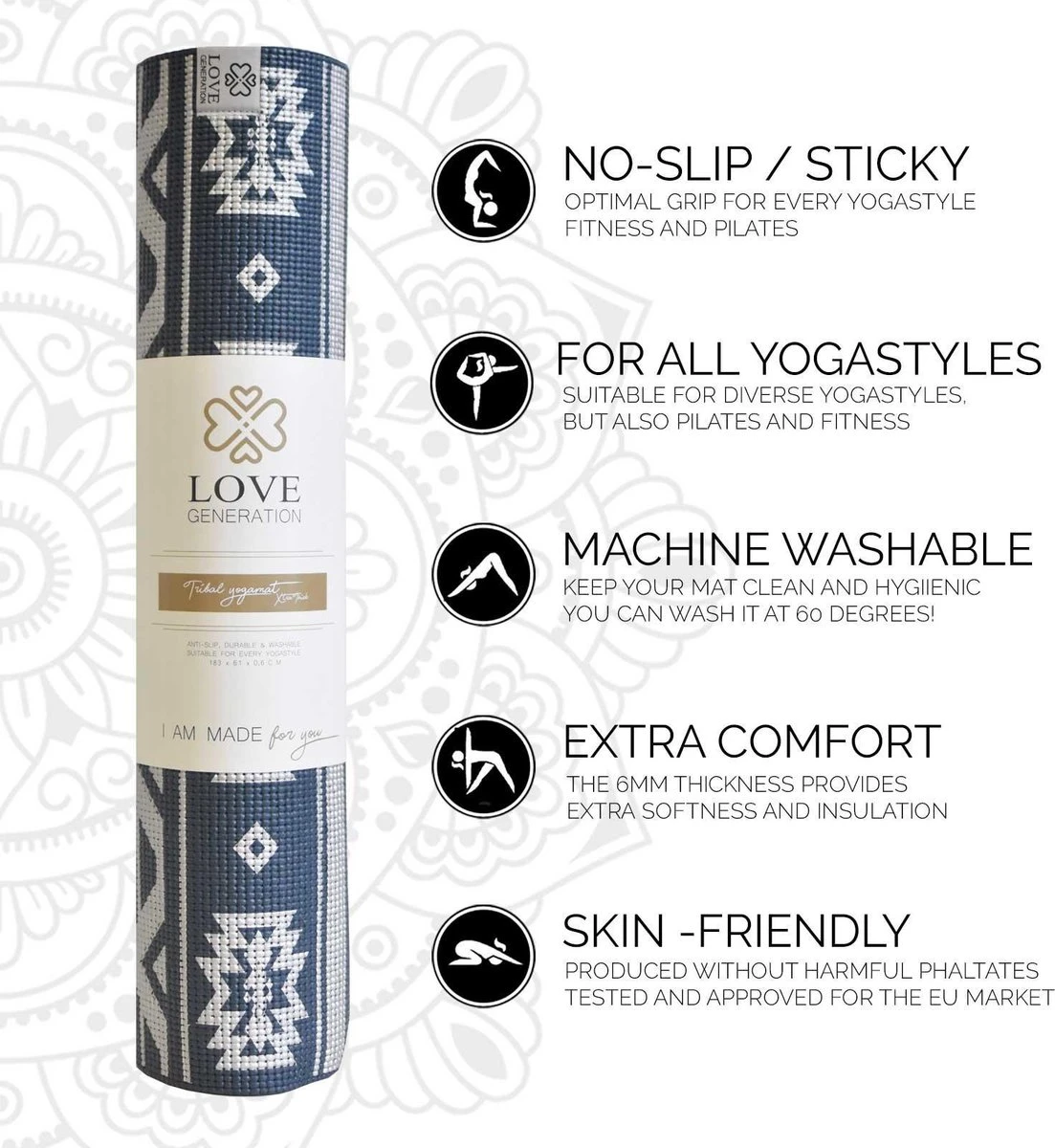 Love Generation ● Design Yoga Mat ● Fitness Mat ● Tribal Print ● Blauw