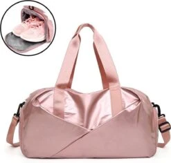 Ben jij opzoek naar een stijlvolle & functionele sporttas? Deze in het roze uitgevoerde dames sporttas afgewerkt met een glanzend Nylon textuur is geschikt voor alle sporten. Met een zeer ruime inhoud van 30 Liter kan jij altijd al je spullen erin kwijt en ben je voorbereid voor jouw volgende workout. Zo heb je aan de bovenzijde twee waterdichte vakken om gebruikte en schone kleding te scheiden. Één apart ademend schoencompartiment en aan de voorzijde een handig goed bereikbaar vakje om je sleutels, pasjes, portemonnee en mobile telefoon in te bewaren. Bestel vandaag nog jouw duffelbag en haal het beste uit jouw sport.