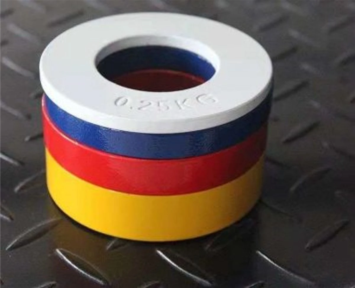 Deze nieuw ontworpen fractionele schijven worden verkocht in set van 5KG. Met gewichtstoenames van 0,25(wit)-0,50(blauw)-0,75(rood)-1,00KG(geel) . Elke plaat is gemaakt van een gietijzeren kern met buitencoating voor een stevige, stabiele grip op elke standaard Olympische halterstang. Voor serieuze lifters kan incrementeel laden met fractionele platen en wisselplaten het verschil betekenen tussen het matchen van een oude PR of het instellen van een nieuwe.