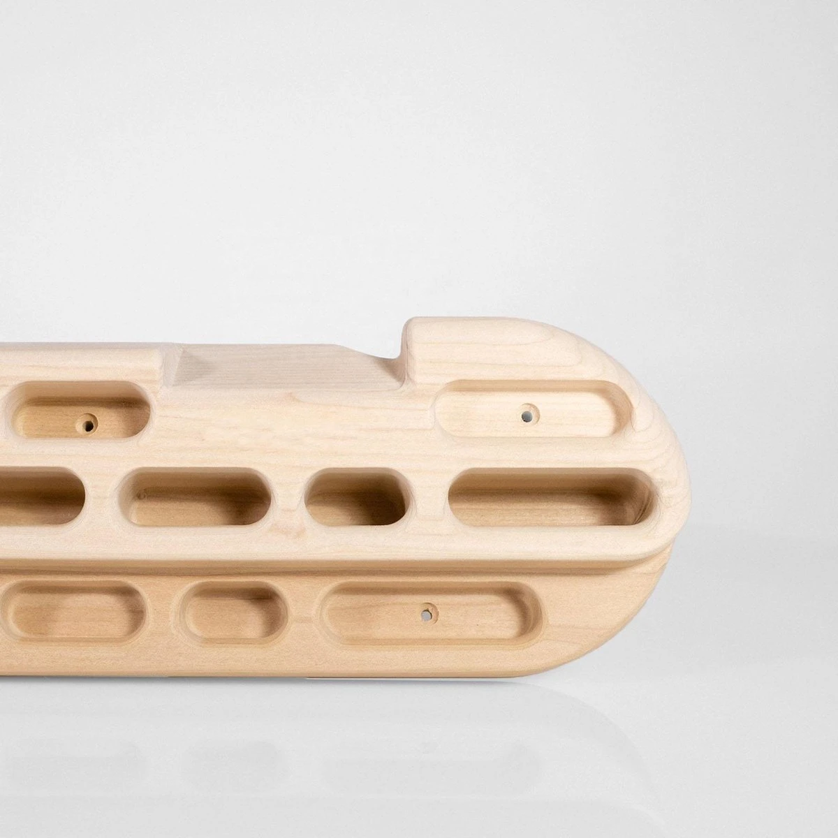 Het hangboard is ook ideaal te gebruiken als pull up bar. Het bord is gebouwd uit hout met een fijne textuur en heeft afgeronde grepen, zodat huid en vingers het niet zwaarder te verduren krijgen dan nodig.