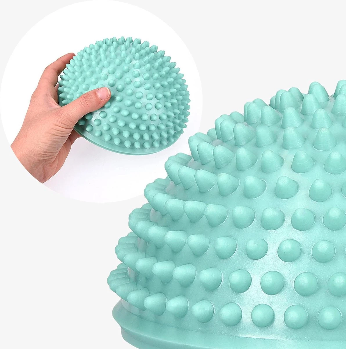 - Dankzij de stekelige bovenkant en de anti-slip onderzijde is de balansegel zeer stabiel. Voor een goede grip kun je het beste op blote voeten of met gymschoenen op de egel gaan staan.