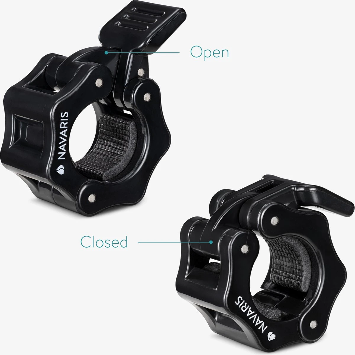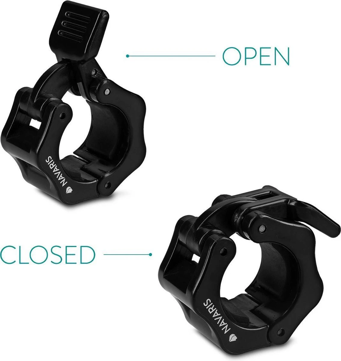 - VEILIGE SLUITING: De halterklemmen van Navaris zorgen ervoor dat gewichten veilig op de halterstang blijven zitten. Het is een makkelijk en veilig alternatief voor traditionele veerklemmen.