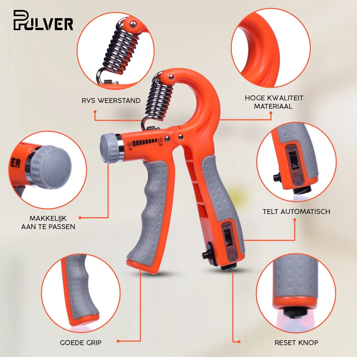 Pulver -Handtrainer 10 To 60kg Met Vingertrainer – Handknijper- Knijphalter – Armtrainer – Gewichten – Hand Knijper Set – Handgripper – Hand Gripper – Grip – Onderarm Trainer – Buigveer – Grip Trainer – Vinger – Hand Spier – Fitness – Oranje