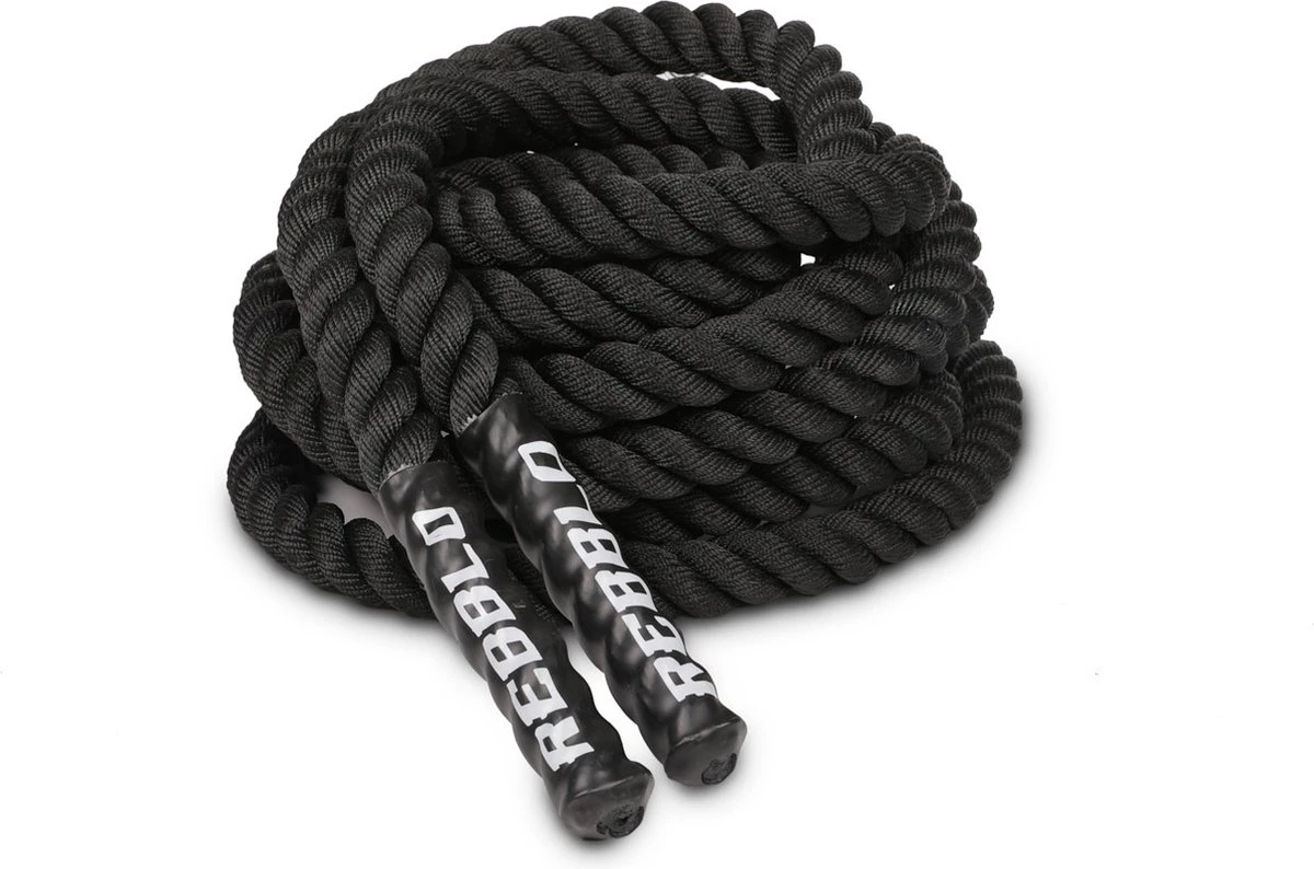 De battle rope is 9 meter lang met een diameter van 38 mm en weegt 7,5 kg. Verder heeft de battle rope soft grips zodat je geen last van je handen krijgt tijdens het gebruik.