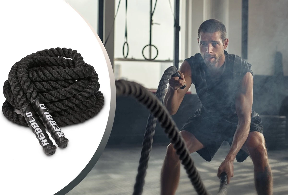 Maak je workout af met een battle rope! Je zou het misschien niet denken maar een battle rope is de perfecte afsluiter voor een training omdat het een combinatie is van conditie en krachttraining. Een training met battle rope is namelijk niet alleen goed voor je uithoudingsvermogen, je traint er ook aardig wat spieren mee. De touwen wegen een flinke 7,5 kg, waardoor je alle spieren flink aan het werk zet. Met battle ropes train je onder andere je buikspieren, je armen, schouders en beenspieren.