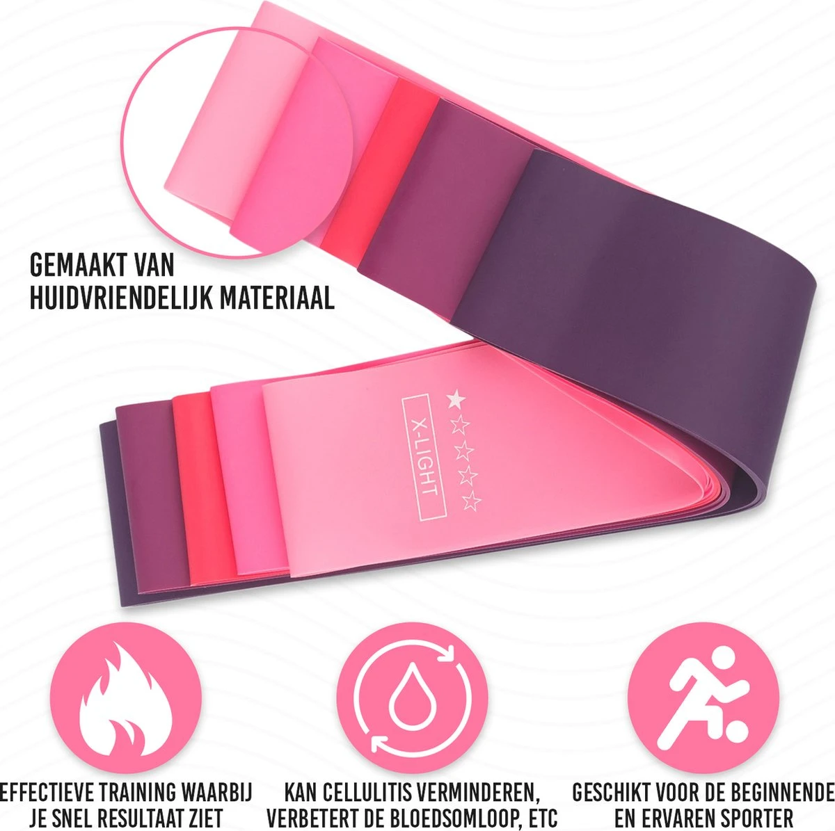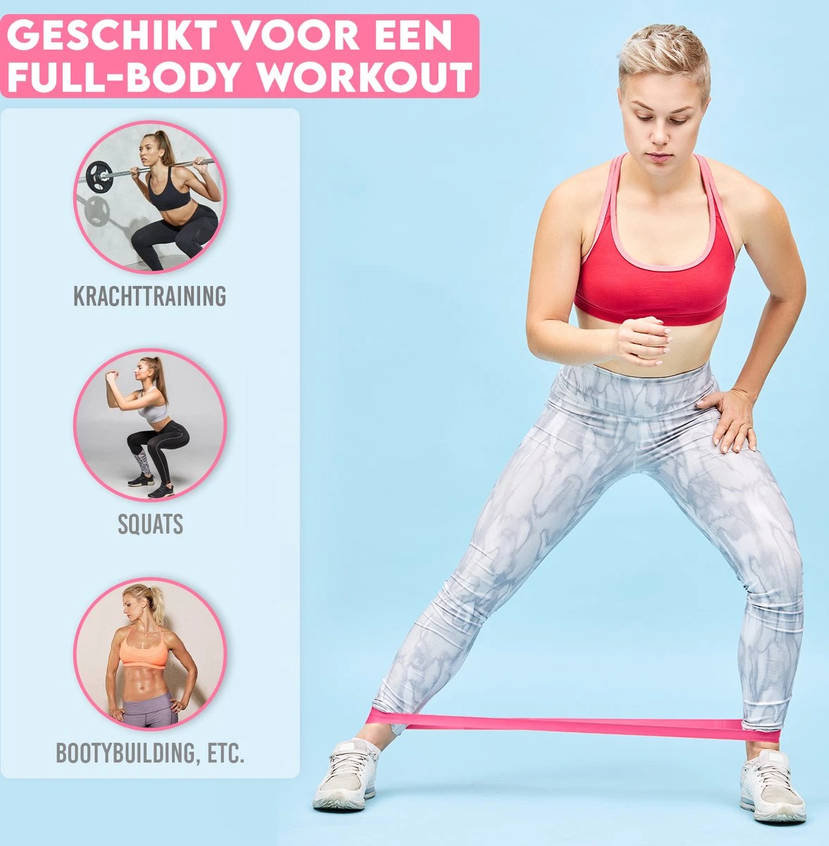 Wil jij graag thuis sporten, fitter worden en je buikspieren en billen trainen? Gebruik dan deze fijne set weerstandsbanden! Met deze resistance banden kun je overal aan de slag. De fitness elastieken zijn geschikt voor een full-body workout, yoga-oefeningen en kracht- en conditietrainingen. Je kunt ze gebruiken voor squats, lunges, bootybuilding, etc. De weerstandsbanden hebben verschillende niveaus: extra licht, licht, medium, heavy en ultimate.