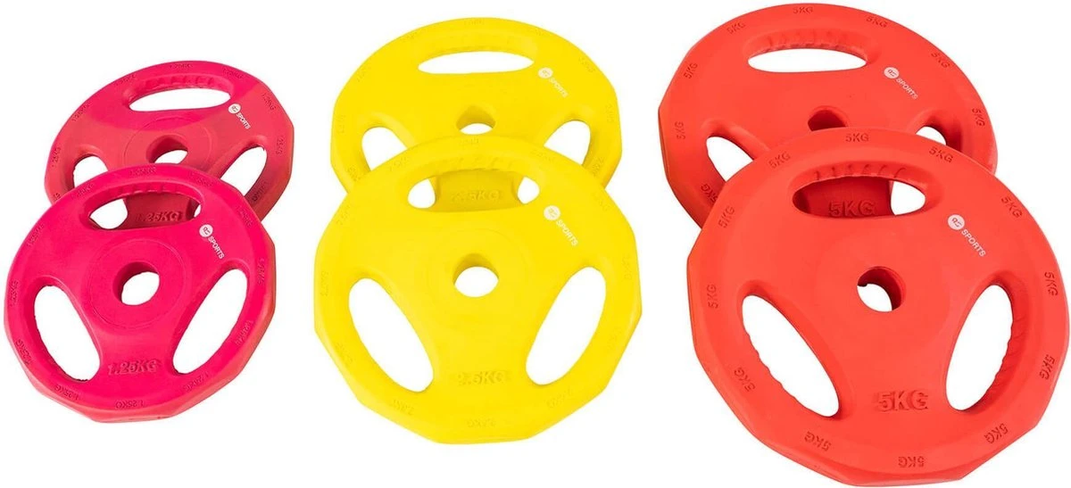 De aerobicschijven van RS Sports zijn te verkrijgen in verschillende gewichten en kleuren. Deze aerobic schijven hebben een gat diameter van 30 mm en zijn overtrokken met rubber. Zeer veel gebruikt bij pumpoefeningen en groeplessen. De schijven hebben 3 handvatten om altijd makkelijk de schijven te pakken en verwisselen. Deze aerobic schijven worden per stuk geleverd.