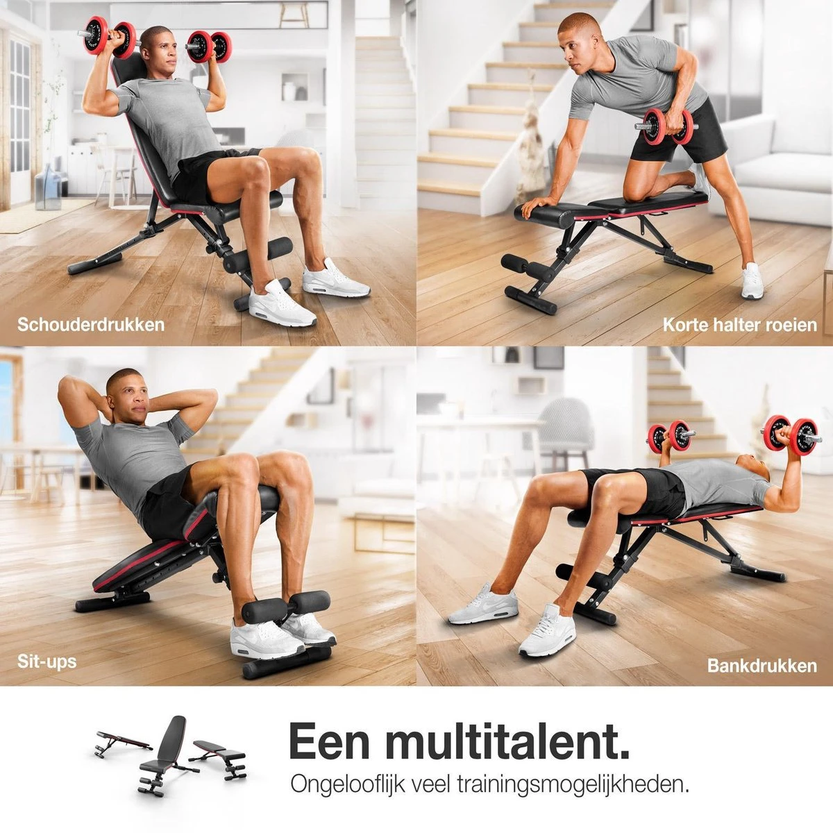 - ✅ : 40 verschillende combi’s maken van de fitnessbank een perfect krachtstation voor je rug-, buik-, borst-, schouder- en beentraining thuis. Lange of korte halters – maak je training met de verstelbare fitnessbank afwisselender dan ooit tevoren!
