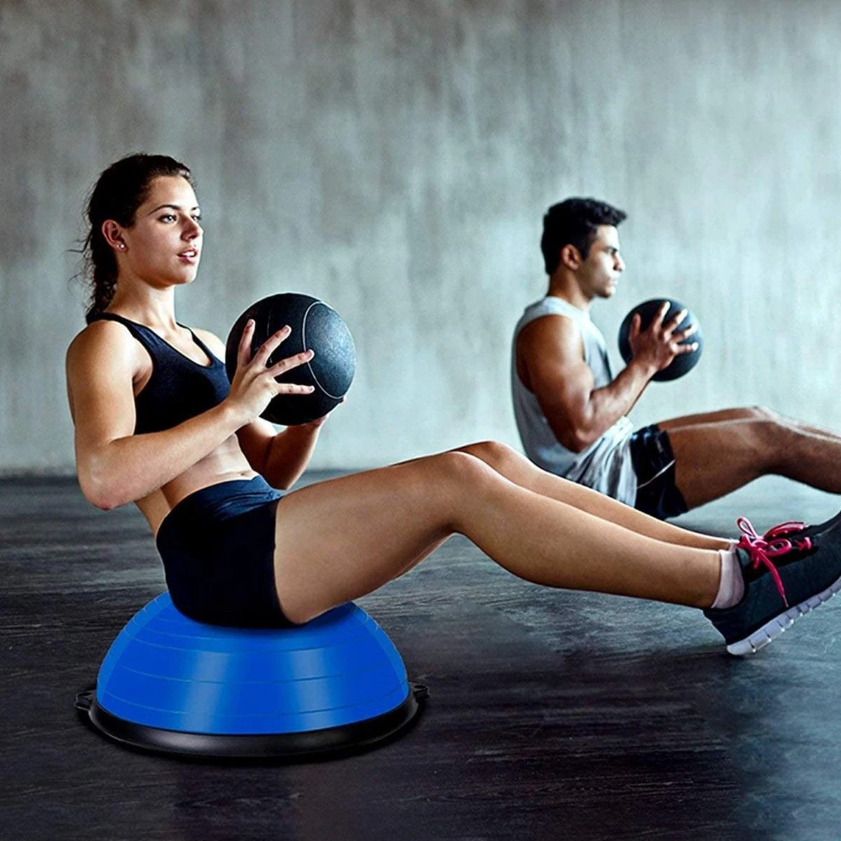 De balanstrainer kan worden ingezet voor elke spiergroep. Naast het staan op het platform, kun je het ook gebruiken voor push-ups om je bovenlichaam sterker te maken. Als je hem omdraait zodat de koepel naar boven wijst, kun je hem gebruiken voor squats, side lunges, sit-ups, yoga, gewichten en meer.