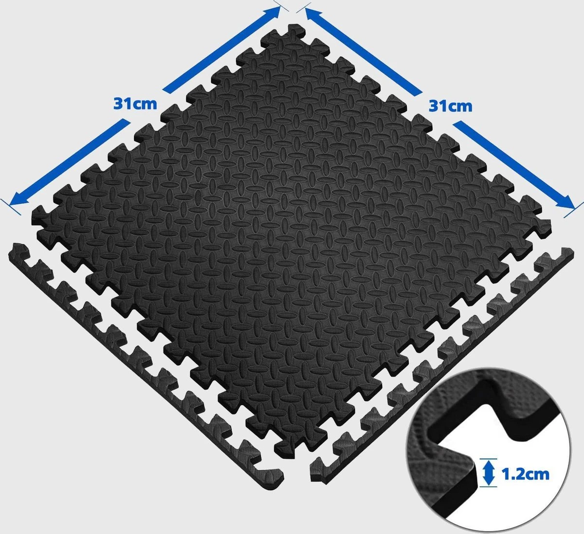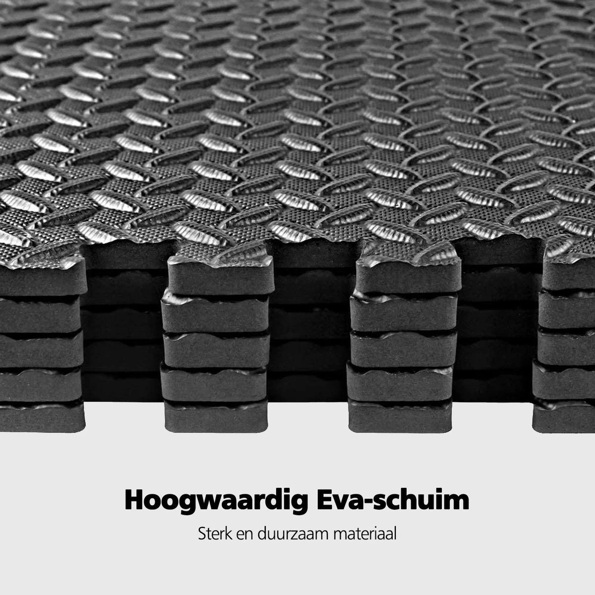 Het sterk gecomprimeerde, milieuvriendelijke, niet-giftige EVA-schuim, is perfect als vloerbedekking voor fitnessruimtes, onder sporttoestellen, in kinderkamers, werkruimtes, garages, kelders en nog veel meer. Het hoogwaardige, lichte materiaal van de mat maakt hem bovendien geluids- en schok dempend, warmte-isolerend, waterdicht, duurzaam en gemakkelijk te reinigen met water en zeep.