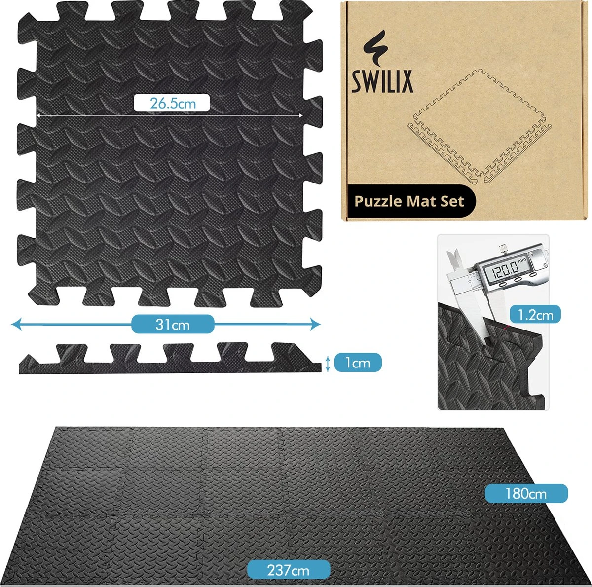 ➡️ Vlug en vakkundig een beschermvloer aanleggen? Een grote oppervlakte snel voorzien van een beschermlaag? Een mat die je vloer beschermt tegen beschadigingen maar ook zorgt voor geluidsdemping? Kies dan voor de Swilix vloerbescherming set van 48 stuks. De losse matten zijn samen maar liefst 4.26m² groot, waardoor je snel een grote vloeroppervlakte bedekt. Ook handig voor hiphop-, dans- of freerunactiviteiten.