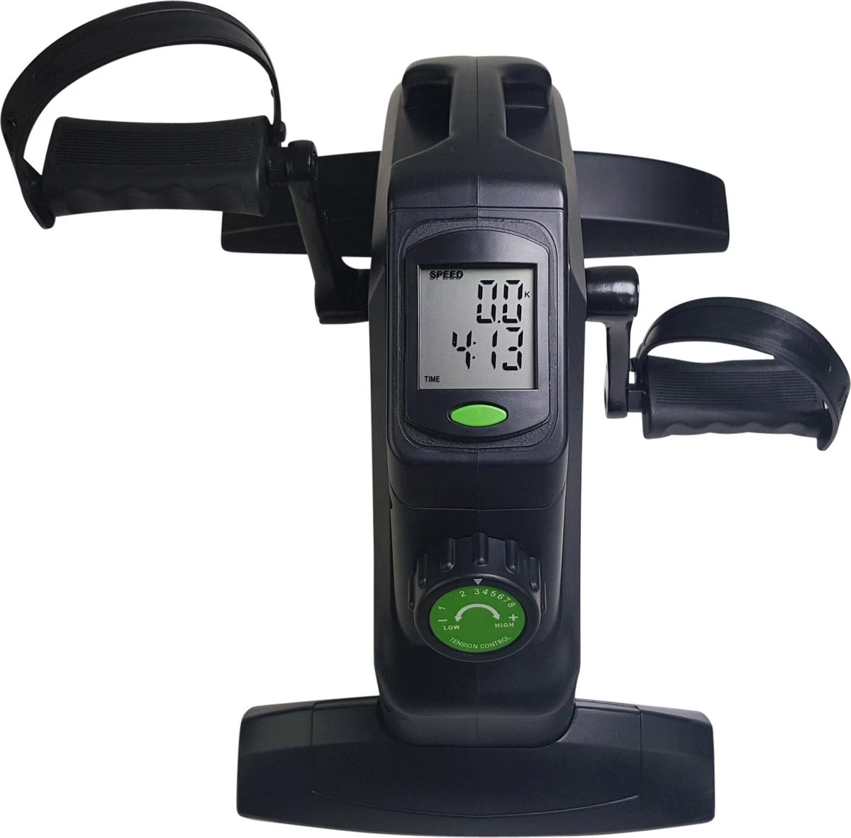 Train niet alleen je benen, maar ook je armen. Plaats het toestel op een tafel en maak van de pedalen handvaten met stevige grip. Je stelt de weerstand in op het gewenste niveau en de ingebouwde computer geeft de snelheid, de trainingstijd, het geschatte aantal calorieën en het aantal omwentelingen per minuut weer. De M35 mini bike stopt in alle veiligheid met het magnetisch remsysteem (PMS manual brake system).
