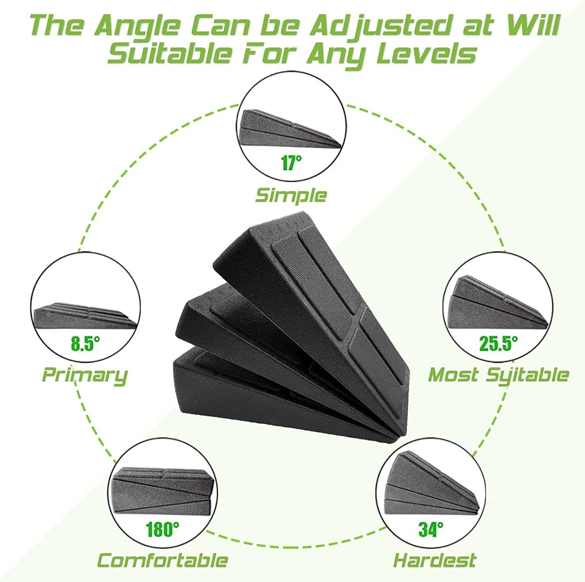 - [EENVOUDIG & EFFECTIEF SLANT BOARD] Onze schuimkuitbrancard squat wedge weegt slechts 400 g en kan een volwassene van 200 kg ondersteunen, dus het zal nooit vervormen. De kuitbrancard heeft vijf verstelbare hoeken: 8,5°, 17°, 25,5°, 34°, 180°. U kunt verschillende niveaus van kuitstrekkingen kiezen, van eenvoudig tot moeilijk. Voetkalfbrancard kan ook afwisseling en uitdaging aan uw oefenprogramma toevoegen. Als uw fysiotherapie-apparaat past het zowel in uw huis als op kantoor.