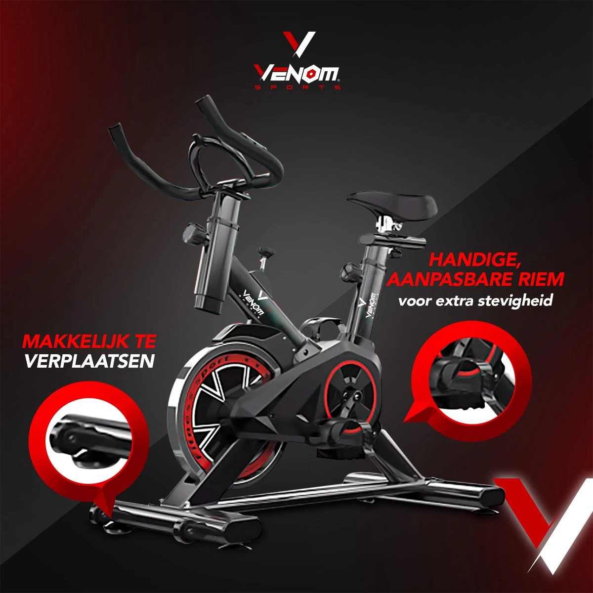 - De Venoms Sports hometrainer is geruisloos dankzij de V-belt aandrijving.
