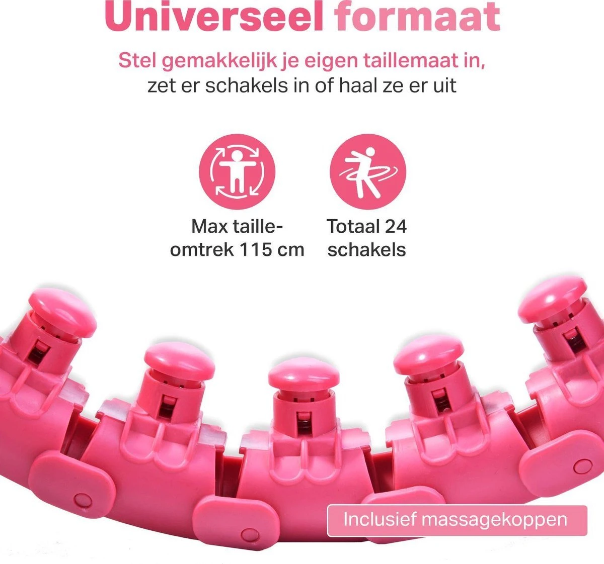 - Geschikt voor ieder lichaamstype – Heb jij een maatje meer? Geen enkel probleem! Met deze Fitness Hoelahoep verstel je de hoepel eenvoudig naar jouw taille maat. Maximale buikomvang: 115cm Wanneer u een grotere taille maat heeft kunt u contact opnemen via klantvragen voor extra tussenstukken.