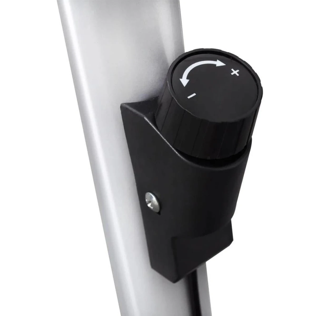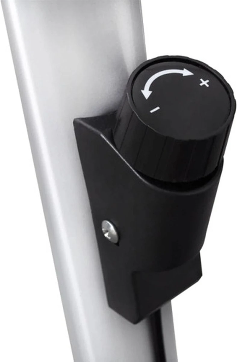 Op het LCD-scherm vind je alle relevante informatie, inclusief tijd, snelheid, afstand en verbrande calorieën. Het zadel is volledig verstelbaar in elke hoogte, waardoor de fiets een comfortabele training biedt. De +/- weerstandsknop op de hometrainer maakt het aanhalen van de band mogelijk waardoor een intensievere training gecreëerd kan worden.