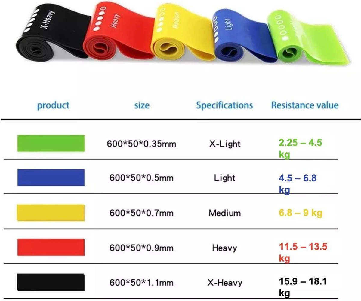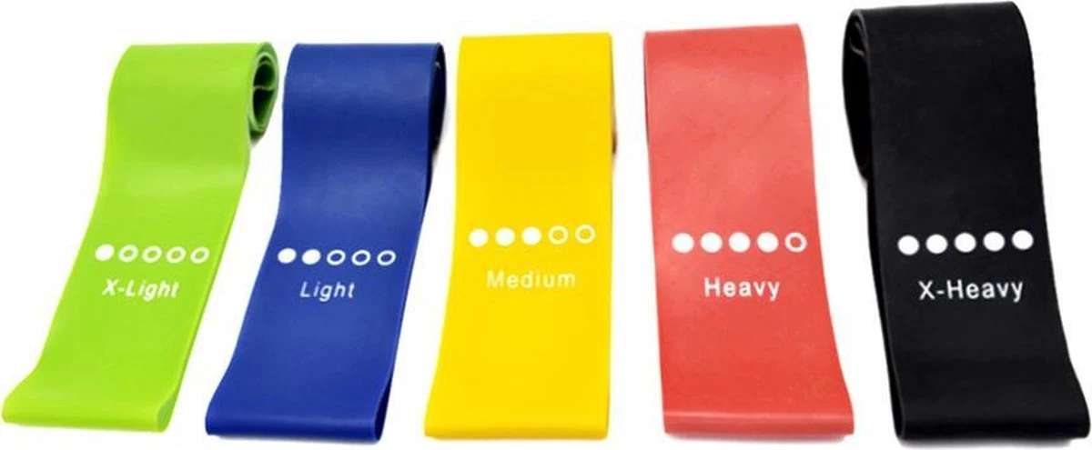 De Weerstandsbanden set bestaat uit 5 verschillende levels: